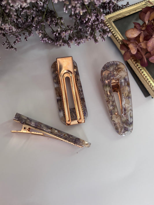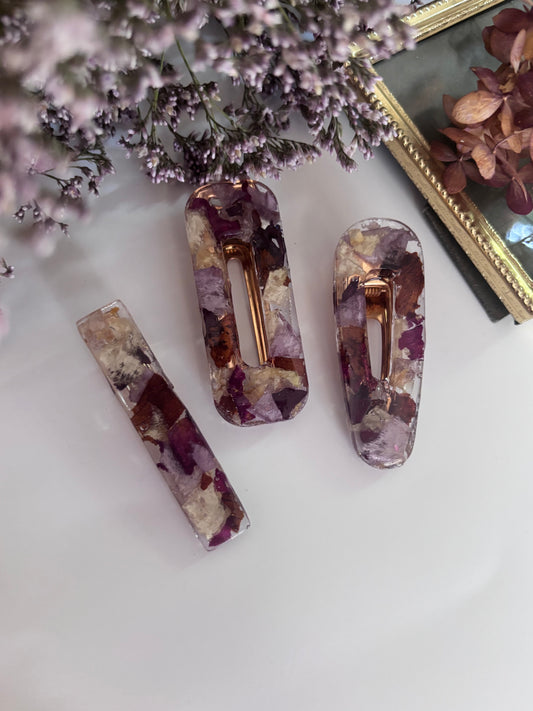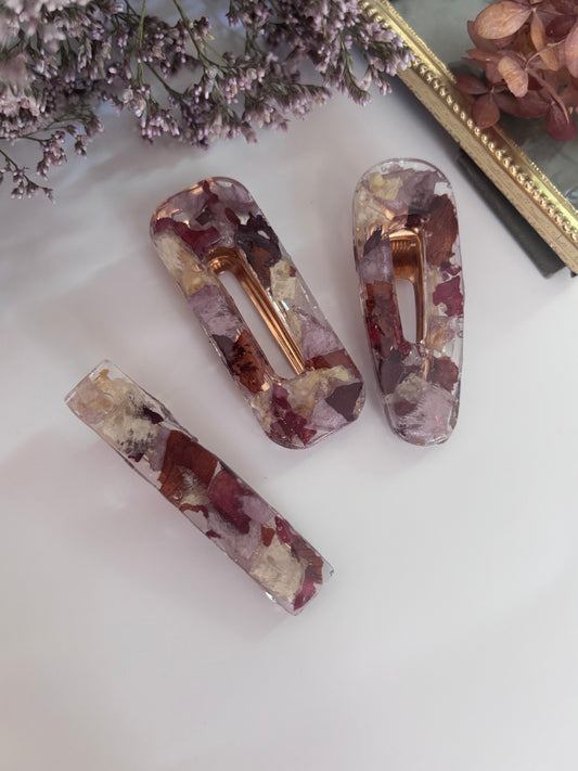 Lot de 3 barrettes en fleurs séchées surcyclées
