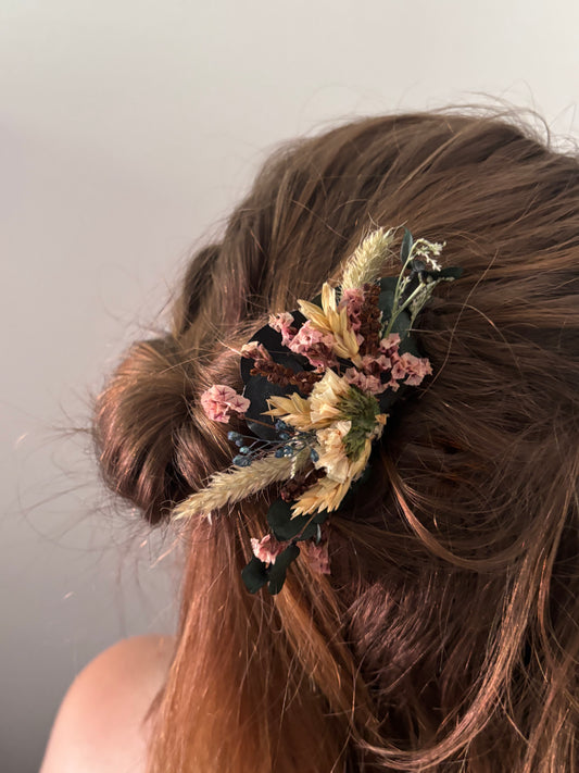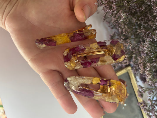 Lot de 3 barrettes en fleurs séchées surcyclées - COULEURS ET COMPOSITION SURPRISE