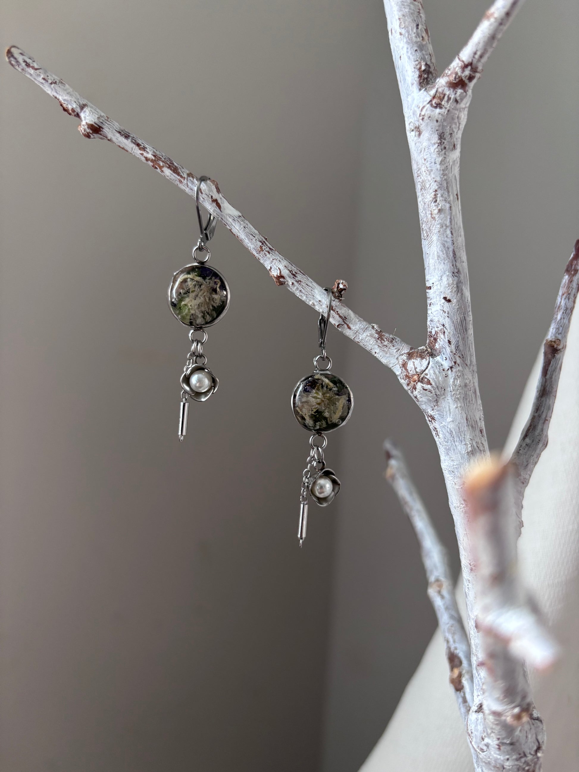 | Symphonie florale | Boucles d’oreilles en fleurs séchées et résine | #1009