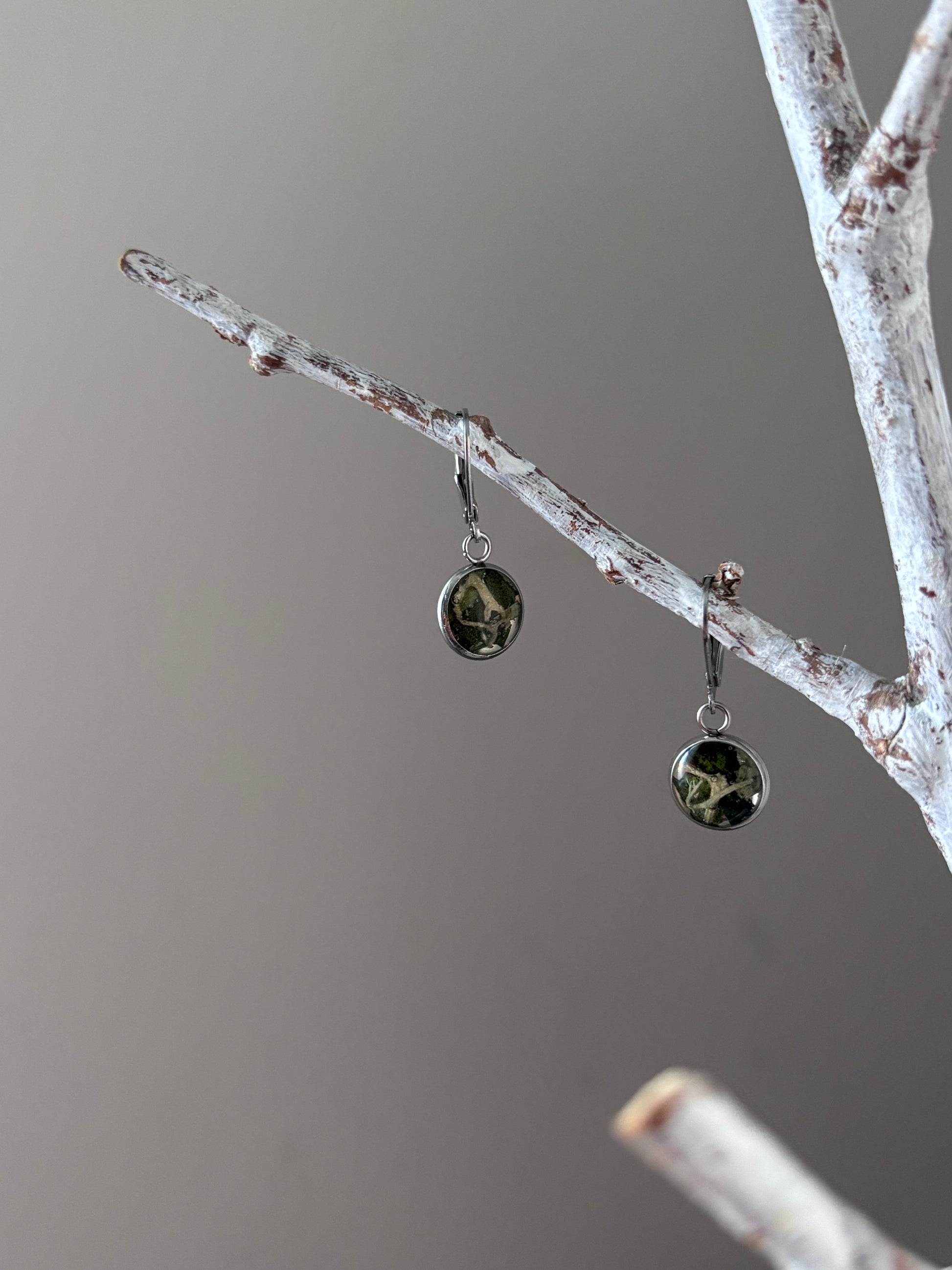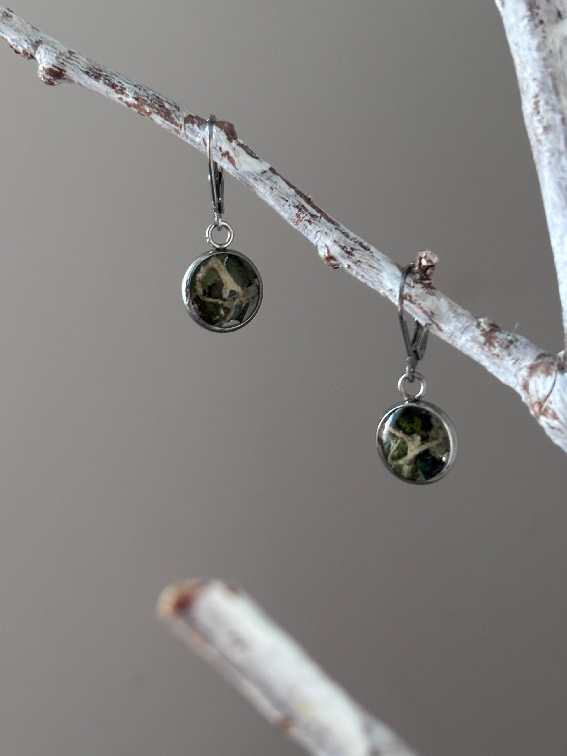 Laissez vous séduire par ces boucles d'oreilles en acier inoxydable hyppoallergénique, réalisée à partir de fleurs séchées qui sont délicatement insérées dans de la résine.