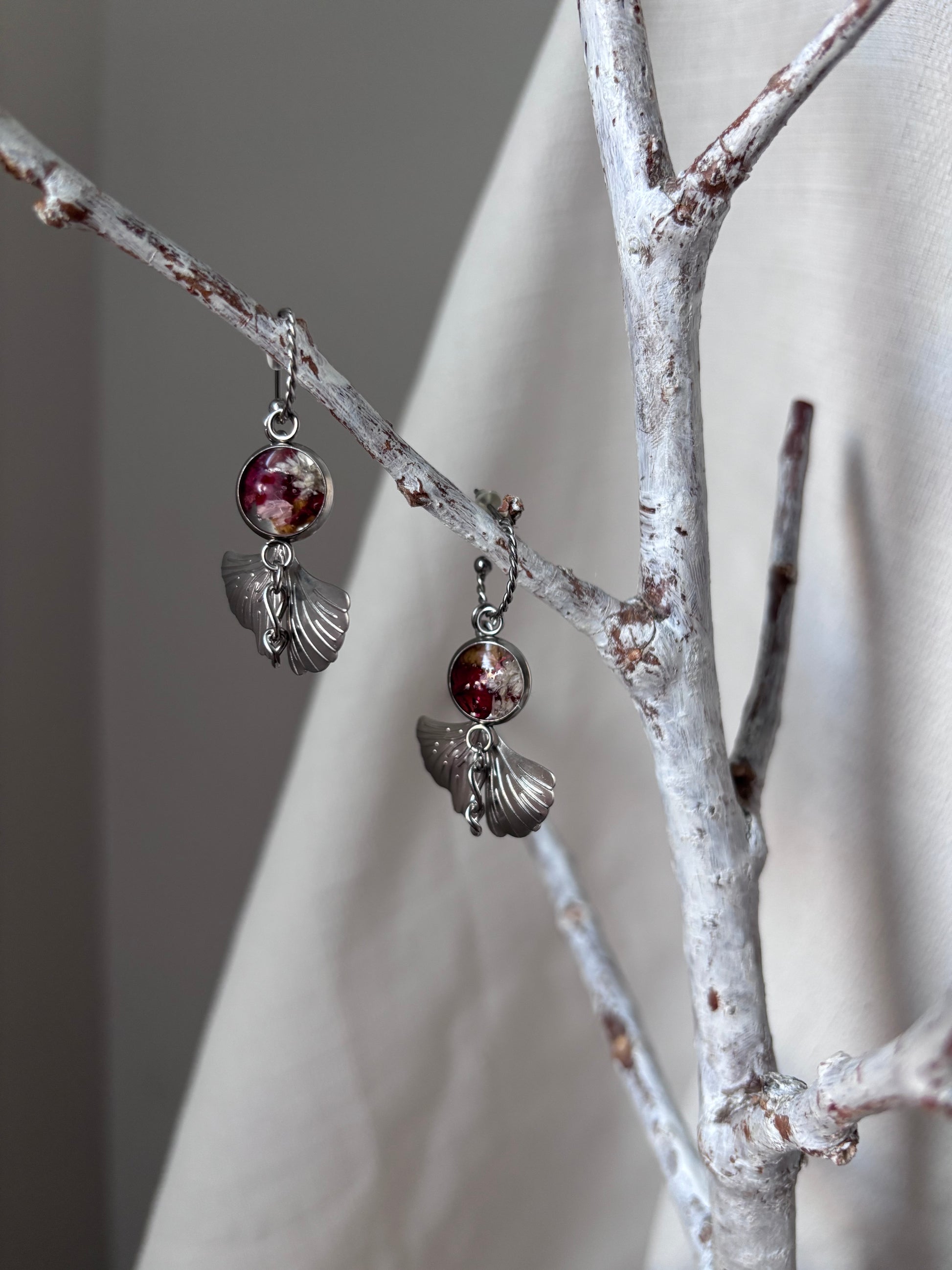 Laissez vous séduire par ces boucles d'oreilles en acier inoxydable hyppoallergénique, réalisée à partir de fleurs séchées qui sont délicatement insérées dans de la résine.
